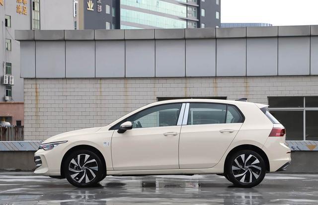 再来看车身侧面部分,车身侧面延续了高尔夫标志性的短前悬、长轴距比例,4289mm的车长与1788mm的宽度营造出紧凑而舒展的视觉姿态。C柱经典的"高尔夫转角"线条经过重新设计,锋利的折角与半隐藏式门把手相得益彰,将风阻系数降。贯穿前后的双腰线设计前低后高,配合18-19英寸新样式轮毂(GTI车型标配红色卡钳),强化了蓄势待发的运动感。车身尺寸数据虽与上代相近,但通过优化窗线比例和车顶弧线,使视觉重心更显低趴。侧裙处新增的立体折线设计,与前后保险杠造型形成呼应,进一步提升了整车的雕塑感。这种在经典比例中融入现代设计语言的巧思,正是高尔夫历经八代演变仍能保持新鲜感的关键。