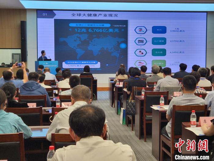 白承洙现场介绍全球大健康产业现状和中韩企业合作方向。赵晓摄